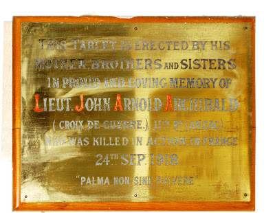 Lieut. John Arnold Archibald Plaque in the Anglican Church,
